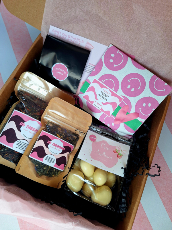 Een pakket met friszoete fruit theetjes en een heerlijke bijpassende traktie voor erbij; Heerlijke (gevriesdroogde) aardbeien met een lekkere dikke laag witte chocolade. Onweerstaanbaar!